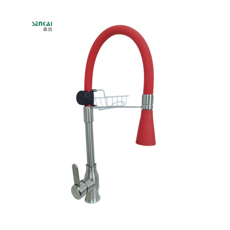 SK-FZ72拉絲主體紅軟管紅噴頭放置籃龍頭
